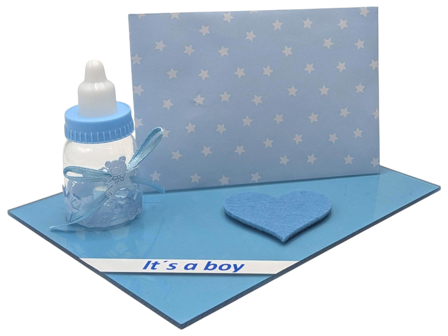 Ideal als originelles Geldgeschenk zur Geburt oder Taufe. Wähle dein Lieblingsmotiv – Flasche oder Storch – und die passende Farbe für Junge (It’s a boy) oder Mädchen (It’s a girl). Dieses stilvolle DIY-Set ist perfekt, um Geld oder Gutscheine liebevoll zu verschenken.
